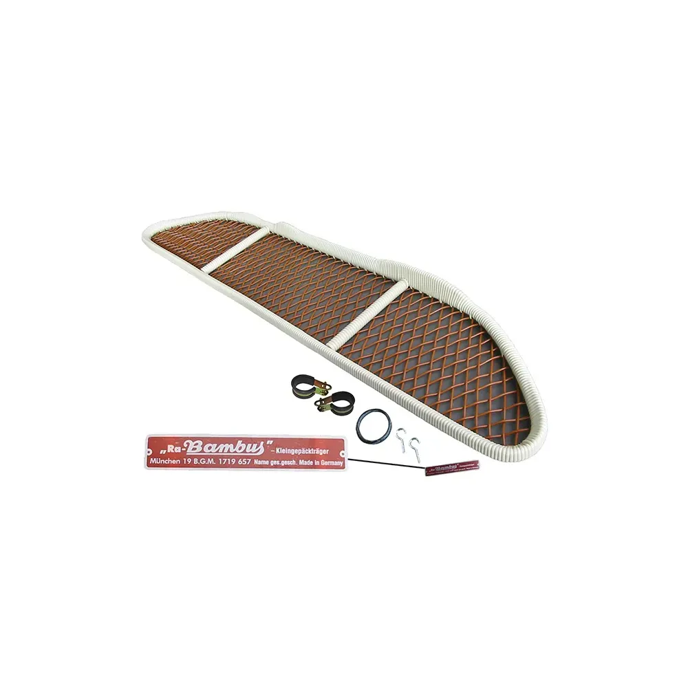 Instruksjoner: De 2 klemmene går til venstre og høyre på de fremre hjørnene av brettet. De 2 krokene er skrudd i baksiden av brettet, på hver side av rattstammen. Du kan nå sikre brettet på baksiden med o-ringen rundt rattstammen og hektet i krokene. Plasser nå fronten av brettet som du ønsker og fest den til kroppen med klemmene og skruene.